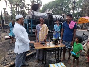 Supported a Fire victim at Budraigudem village with a sewing machine (burnt in house fire accident) and a Solar light |