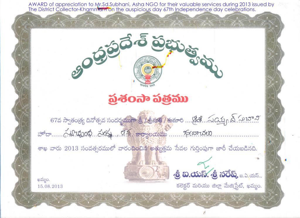 - We have negotiated/ fought with A.P.F.D for grant of Rs. 5.00Lakhs to Sirasanapalli VSS under APCFM Scheme the sale amount of Bamboo i.e.100% share, this is the first share amount received by VSS in theKhammam District.